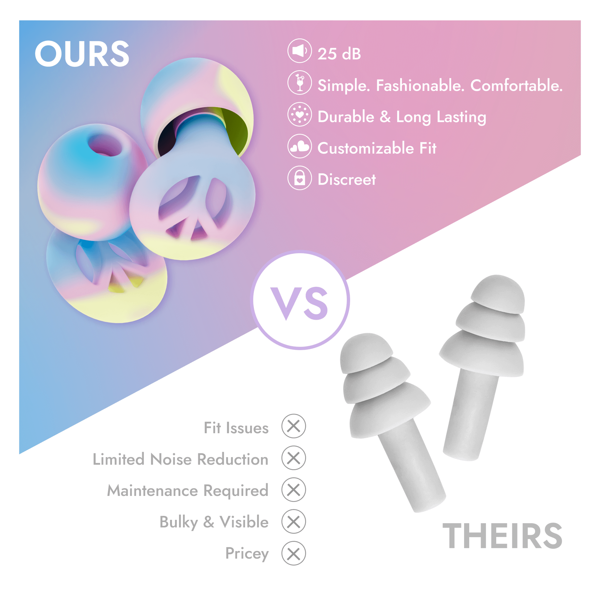Say goodbye to basic, boring earplugs and hello to vibrant colors and comfortable design. Protect your hearing with earplugs that look as good as they feel—perfect for every beat, every event.